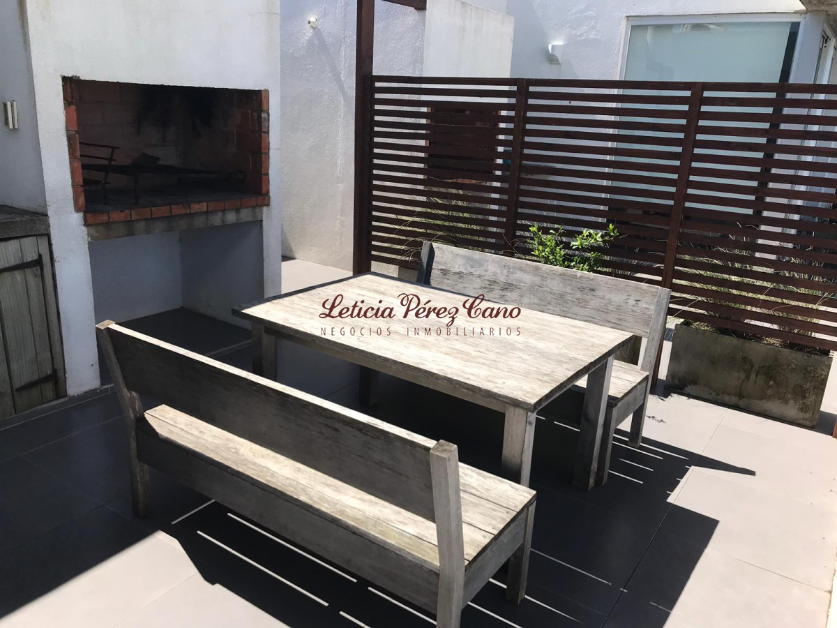 Living comedor, cocina integrada, 2 dormitorios, 2 baños (1 en suite), terraza con parrillero, estacionamiento.