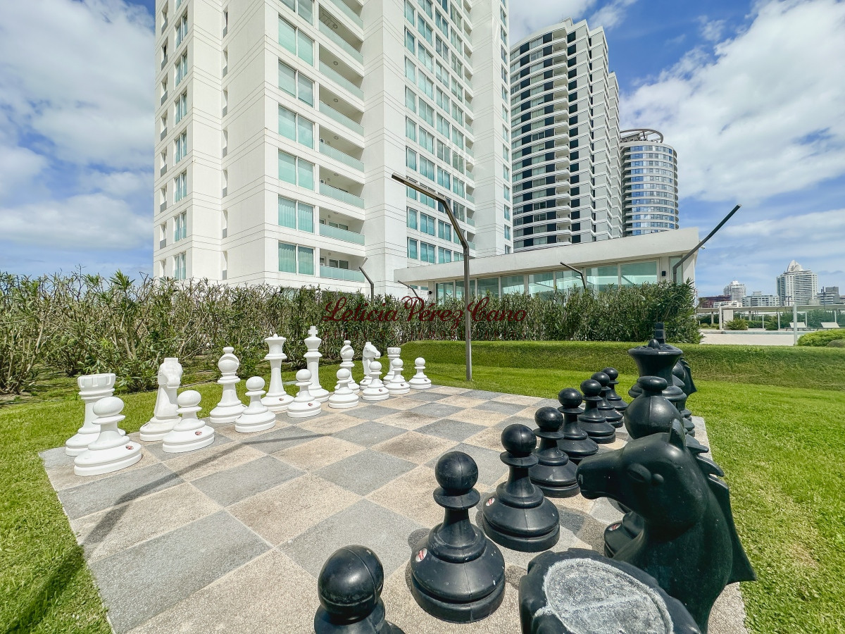 Edificio ubicado frente al mat , piso alto con impactantes vistas al Océano. Unidad esquinera.