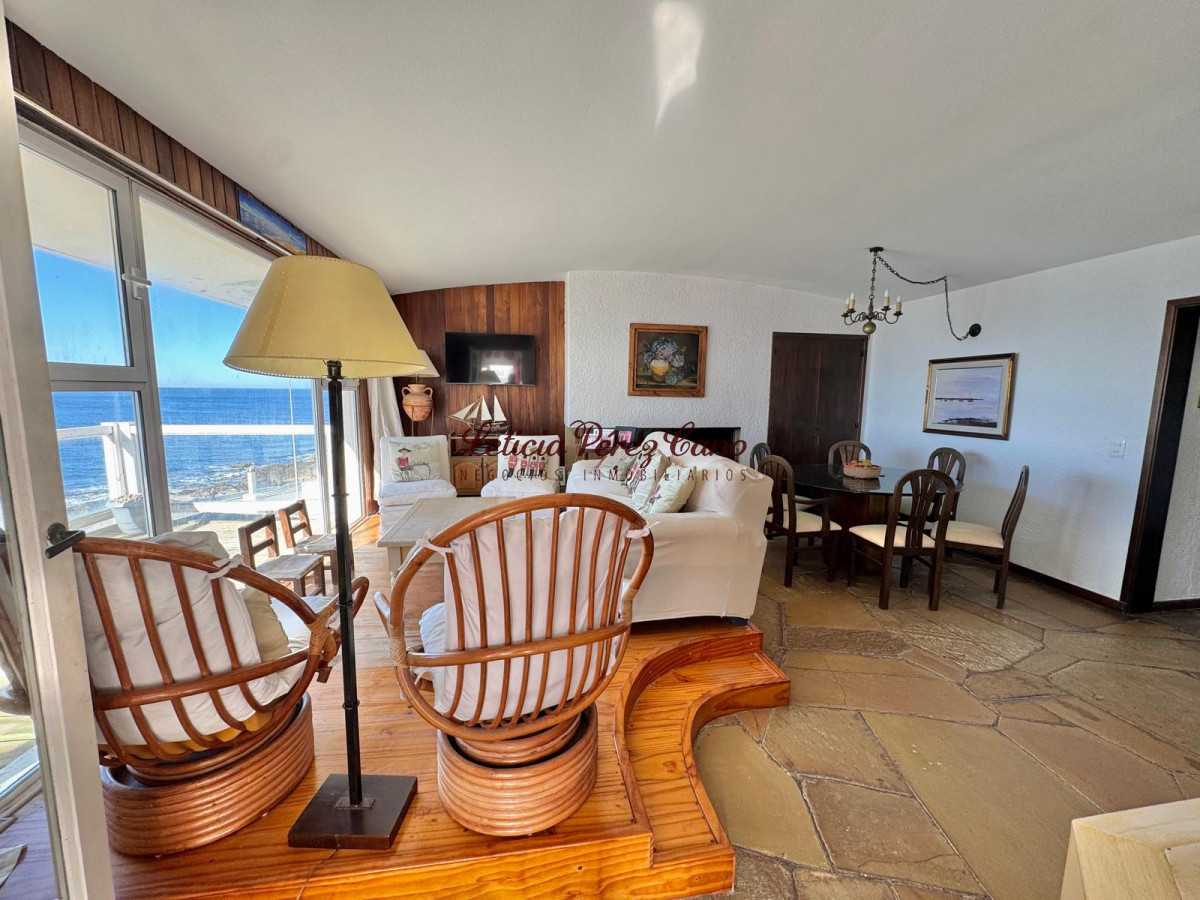Living comedor con hogar a leña , cocina definida, 3 dormitrios, 2 baños (1 en suite), amplio balcón con vista al mar, cochera techada.