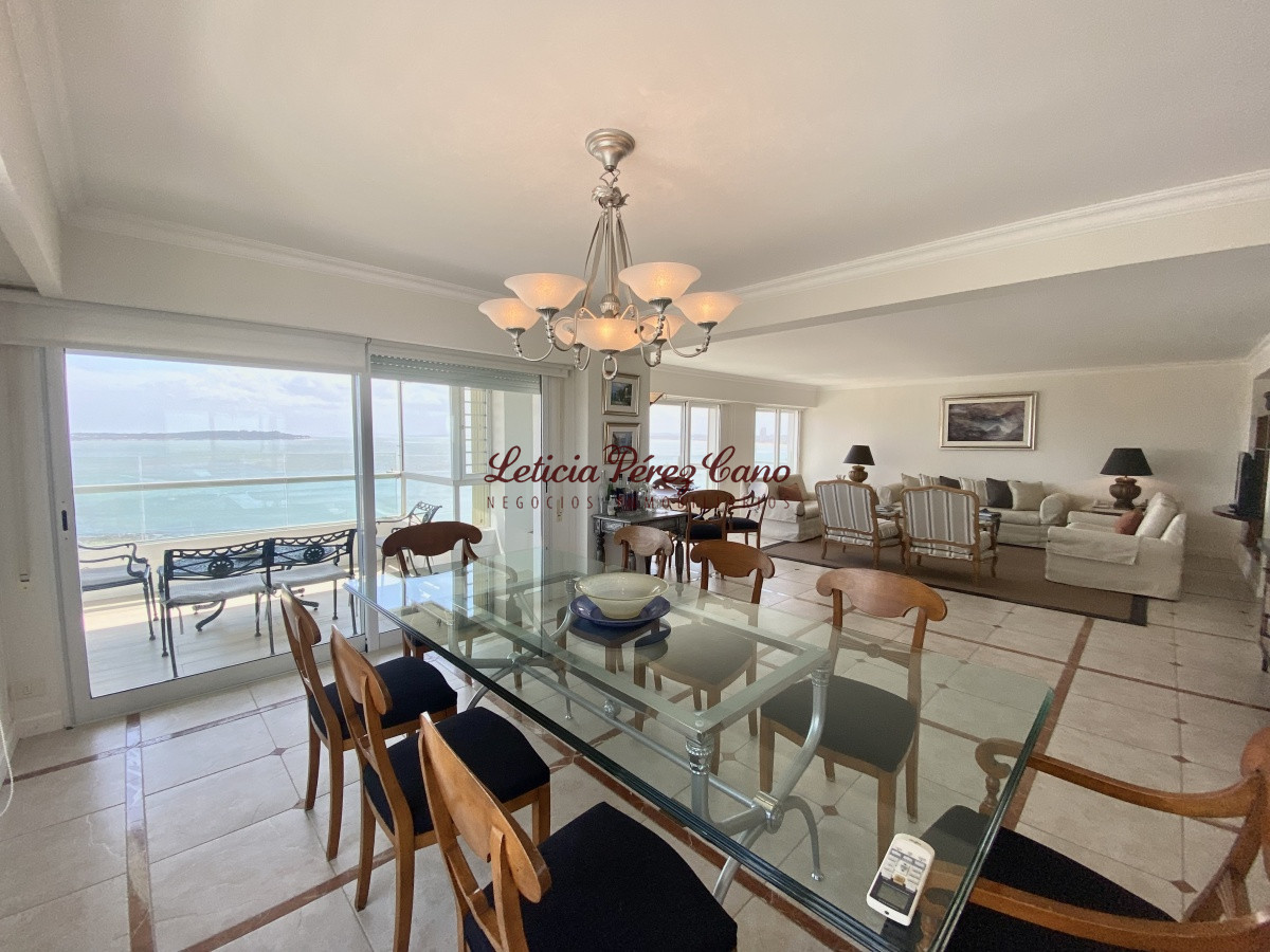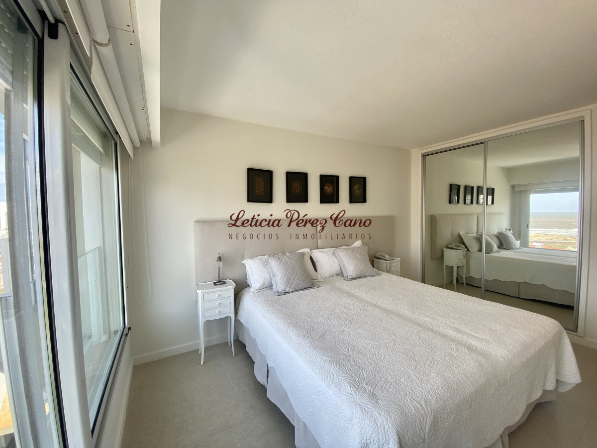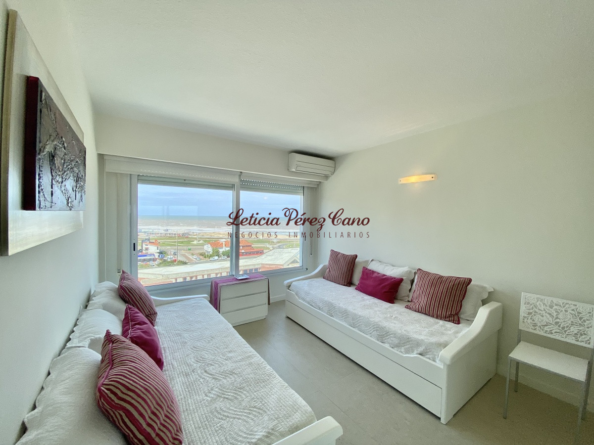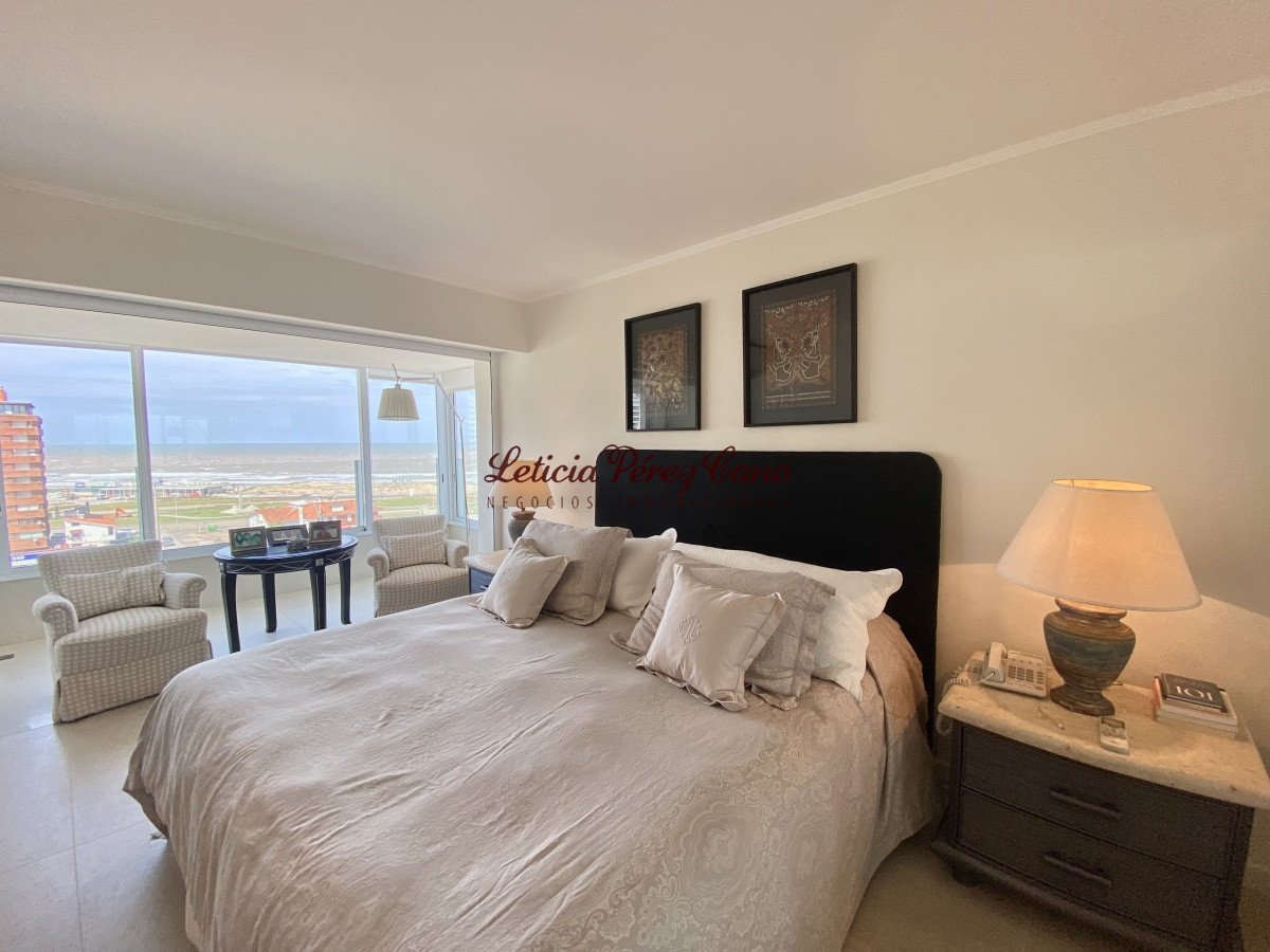 Amplio living comedor, cocina definida, lavadero, 3 dormitorios en suite con vista a Playa Brava, dormitorio de servicio completo, toilette de visitas, balcón con increíble vista plena a playa mansa.