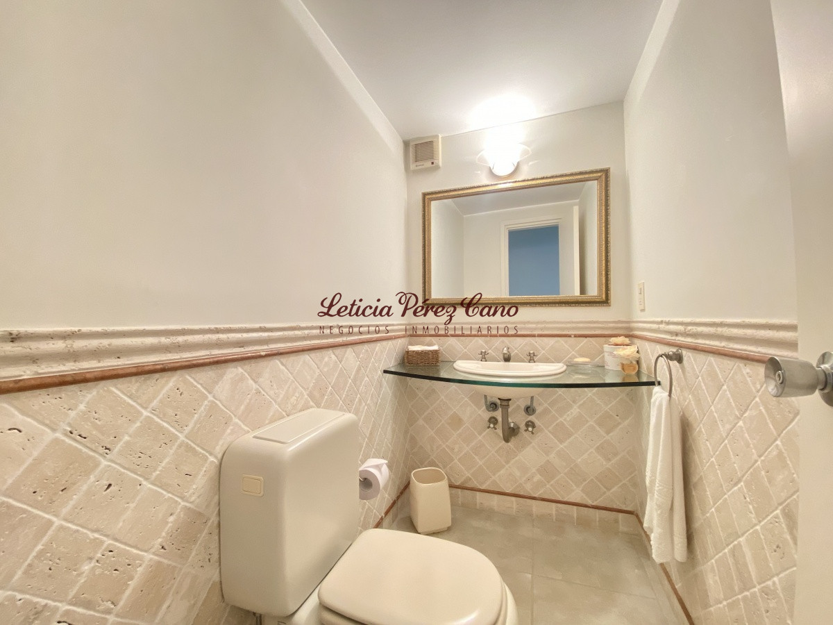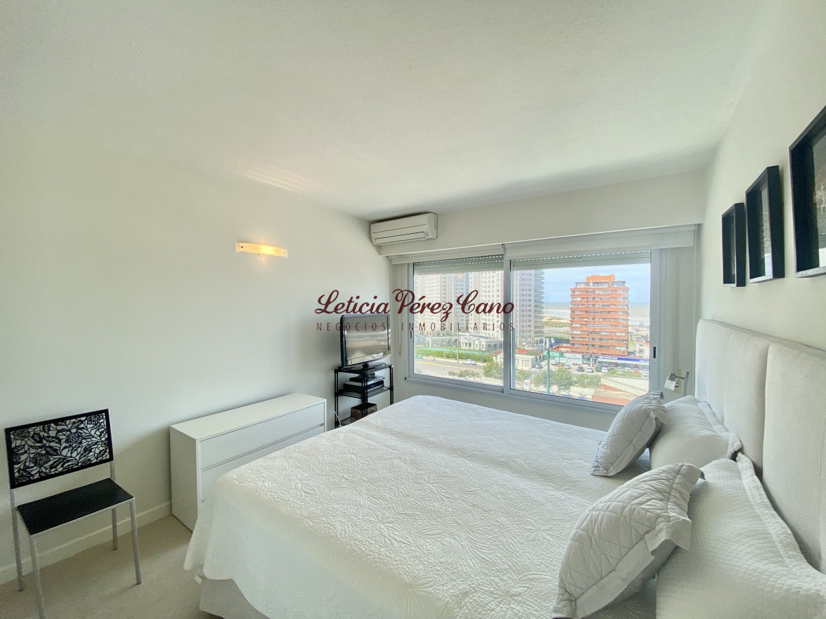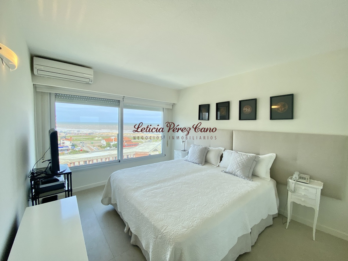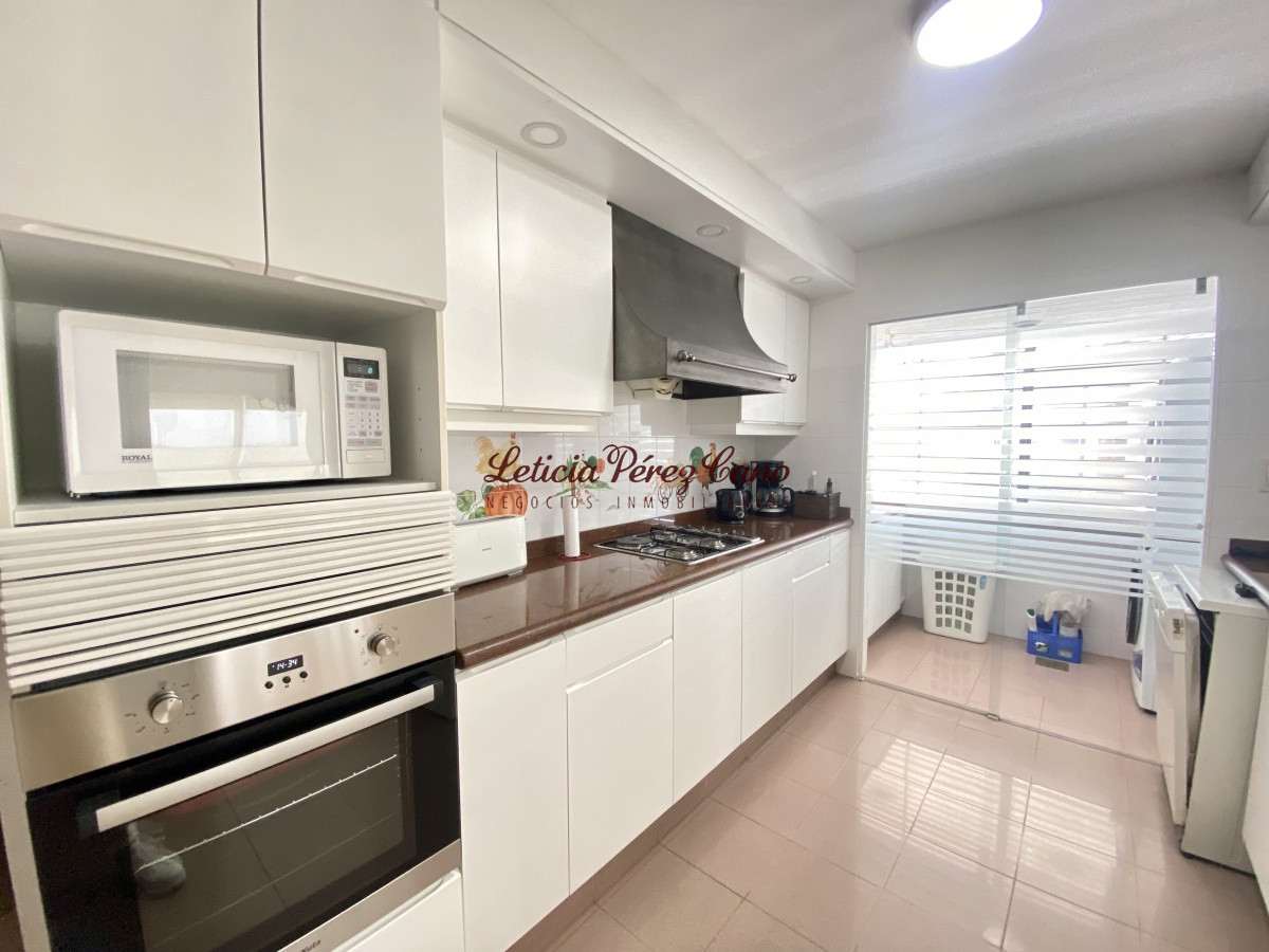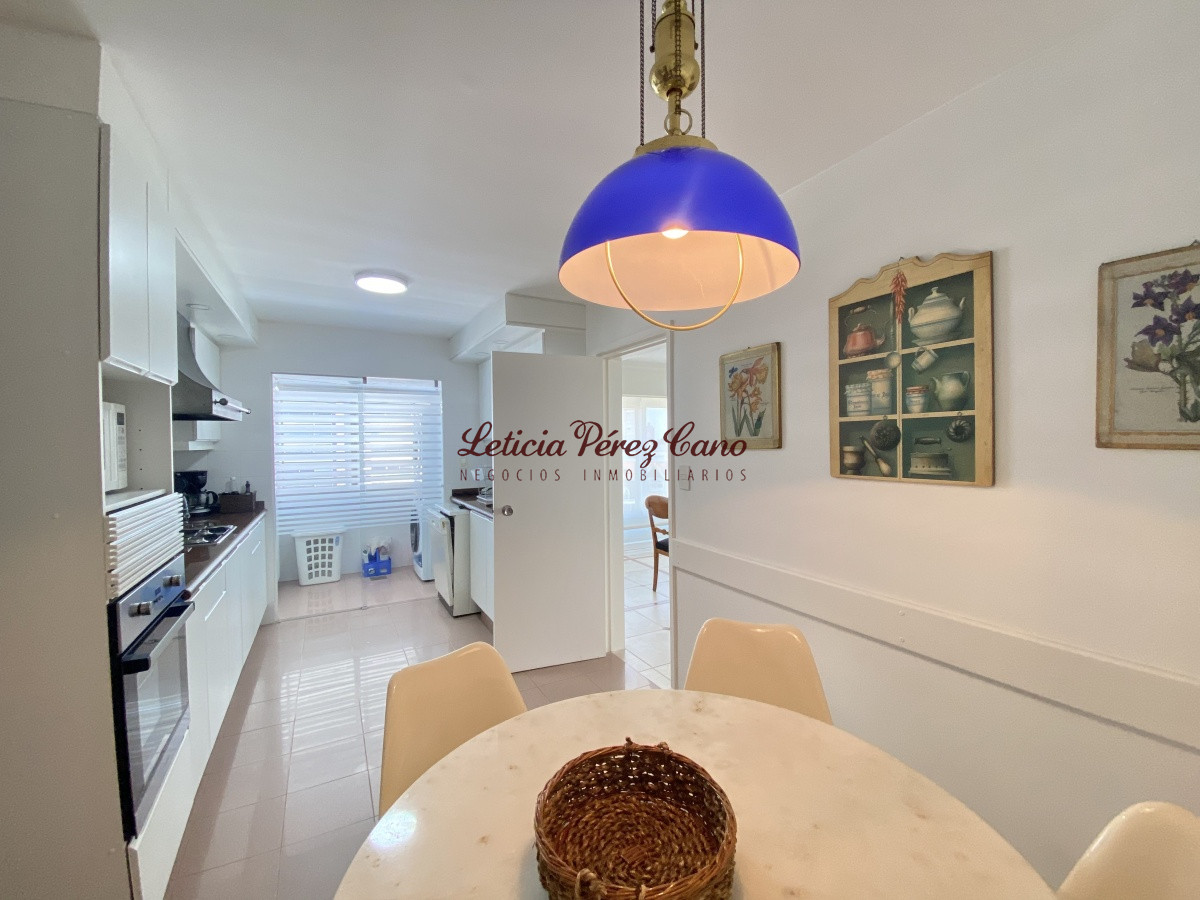 Amplio living comedor, cocina definida, lavadero, 3 dormitorios en suite con vista a Playa Brava, dormitorio de servicio completo, toilette de visitas, balcón con increíble vista plena a playa mansa.