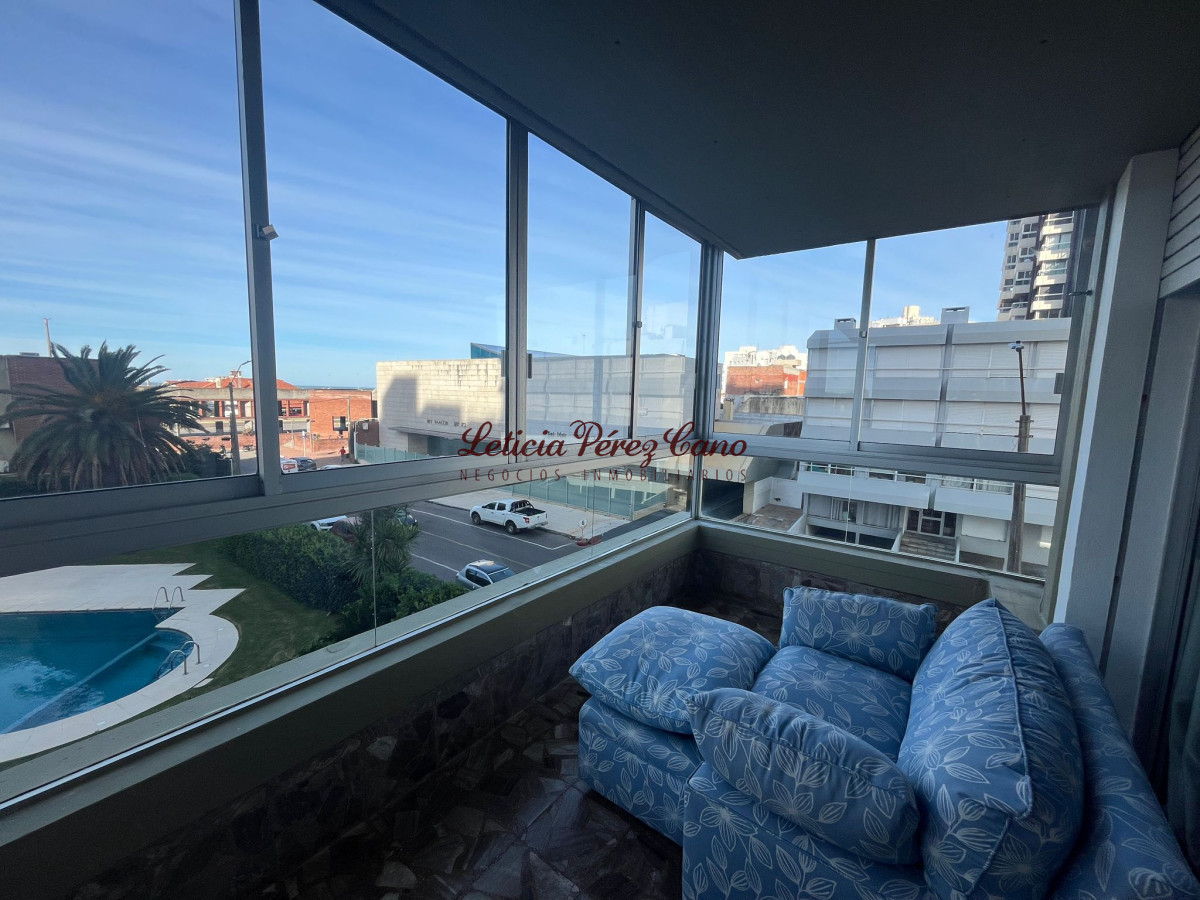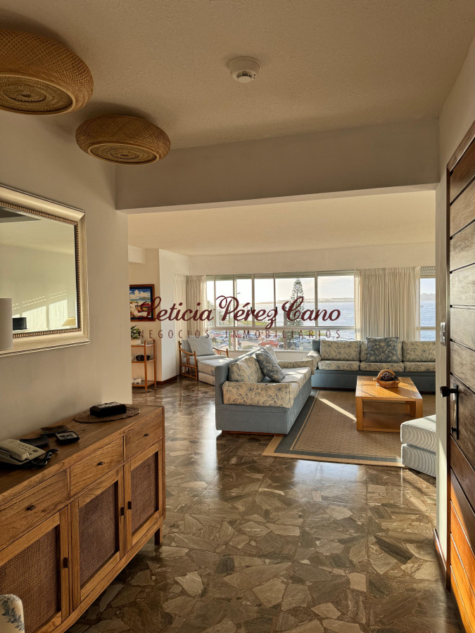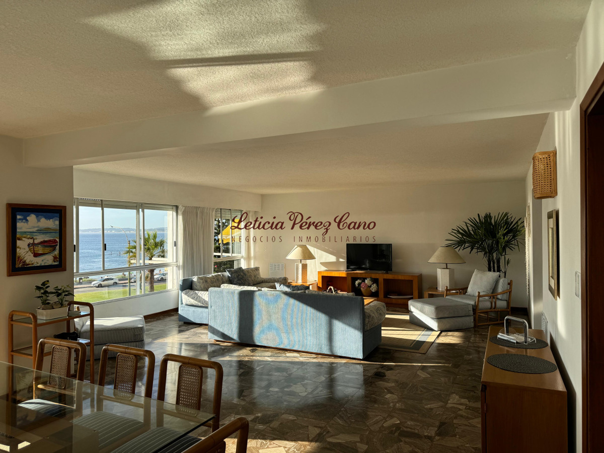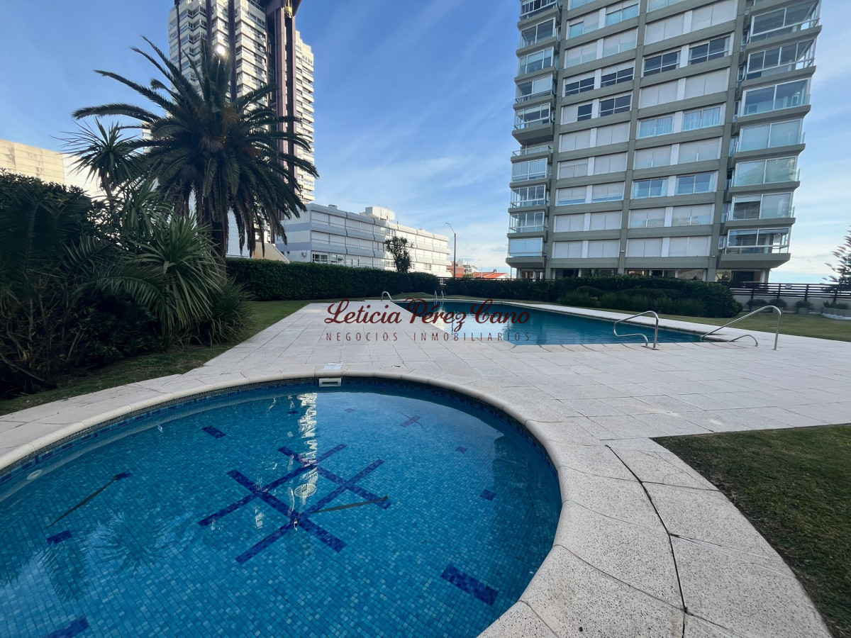 Amplio living comedor, cocina definida, lavadero, 3 dormitorios en suite, dormitorio de servicio completo, toilette de visitas, balcón con increíble vista plena a playa mansa.