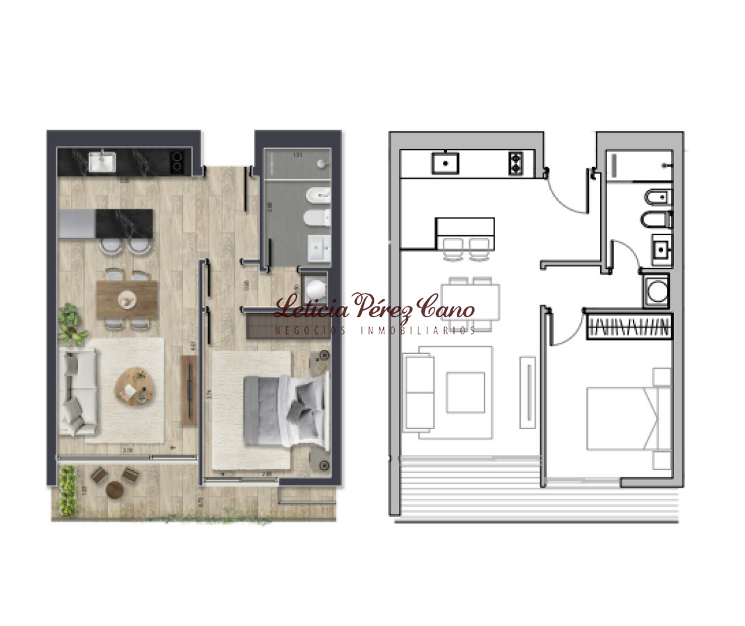 La planta se ubica en un piso medio. Cuenta con living comedor con salida a balcón y cocina integrada, 1 dormitorio y 1 baño. La orientación es noreste, lo que lo hace ideal para disfrutarlo todo el año.