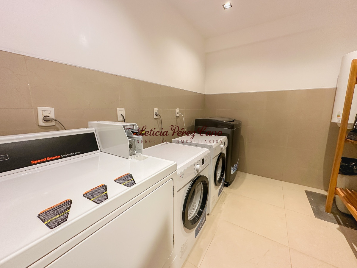 Edificio con piscina exterior, gimnasio, sauna, playroom, parrilleros de uso común, lavadero y servicio de playa.