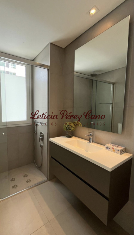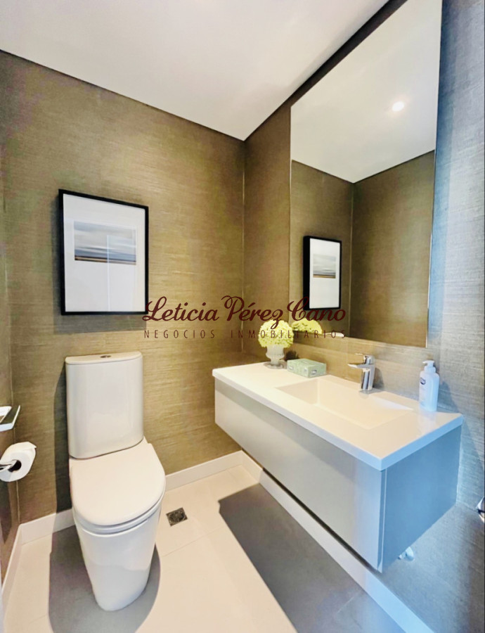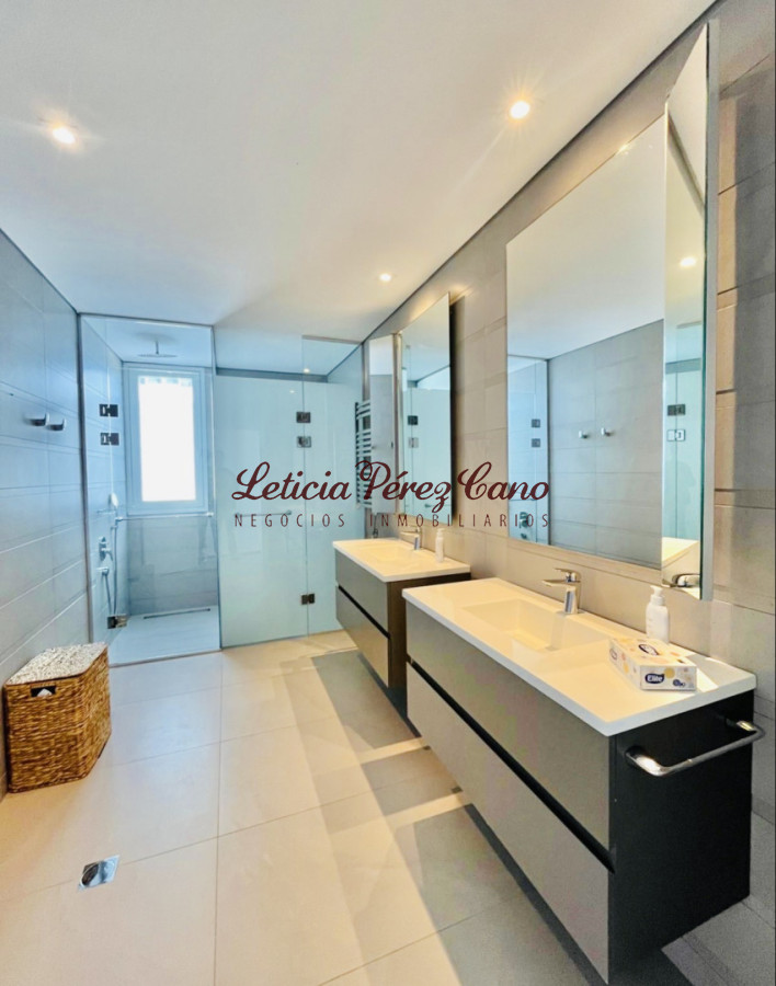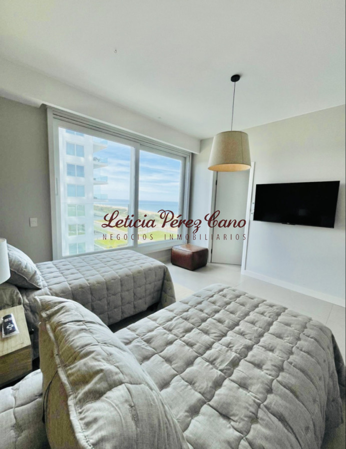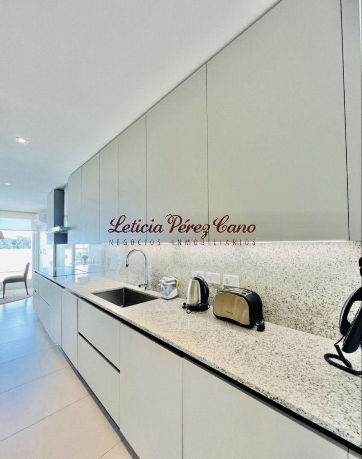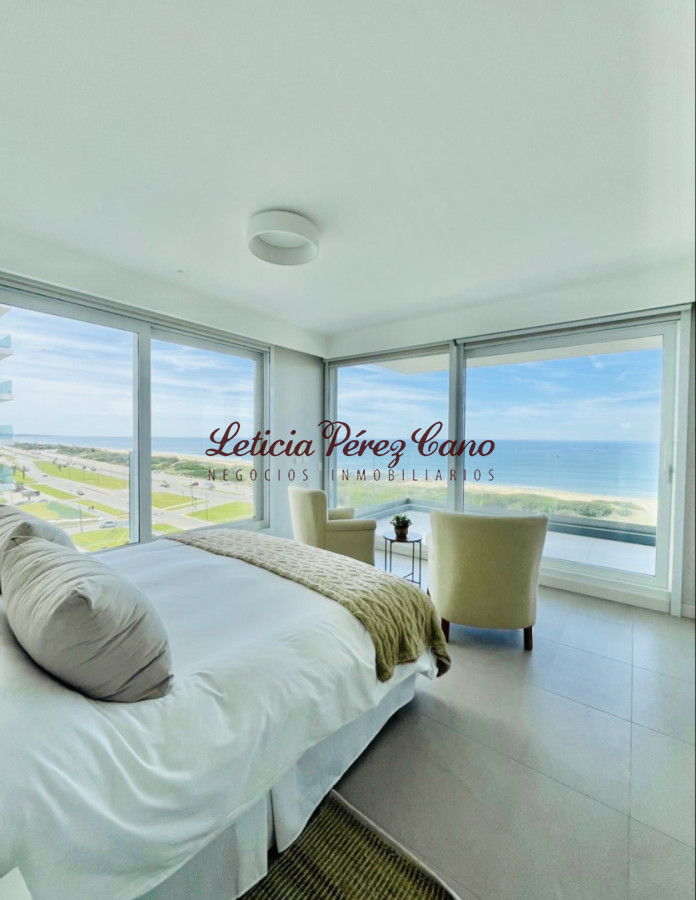 Ofrece tres dormitorios en suite (master suite con vestidor), amplio living comedor con espectacular vista al mar, toilette, amplia y luminosa cocina definida, terraza lavadero, dependencia de servicio con baño. Garaje doble. Baulera.