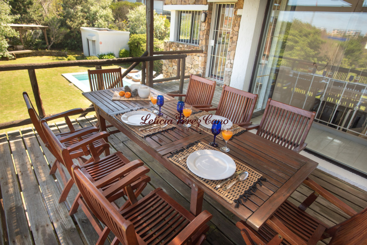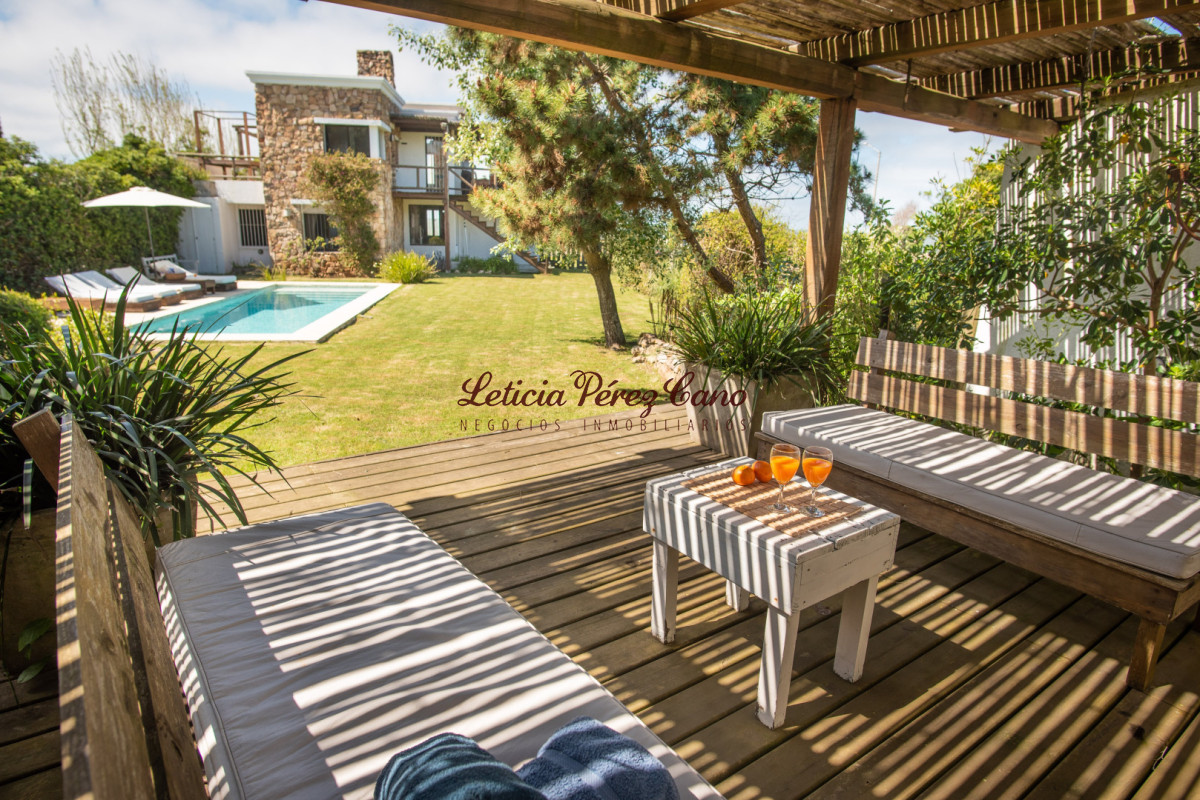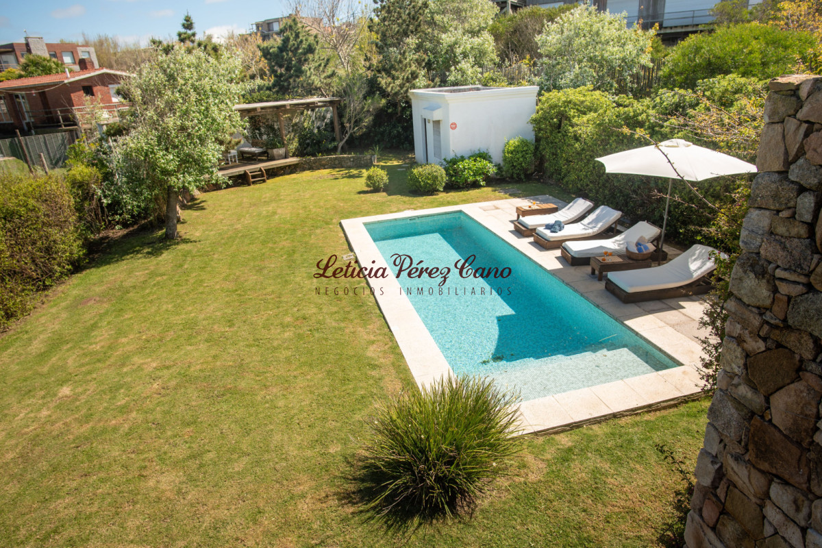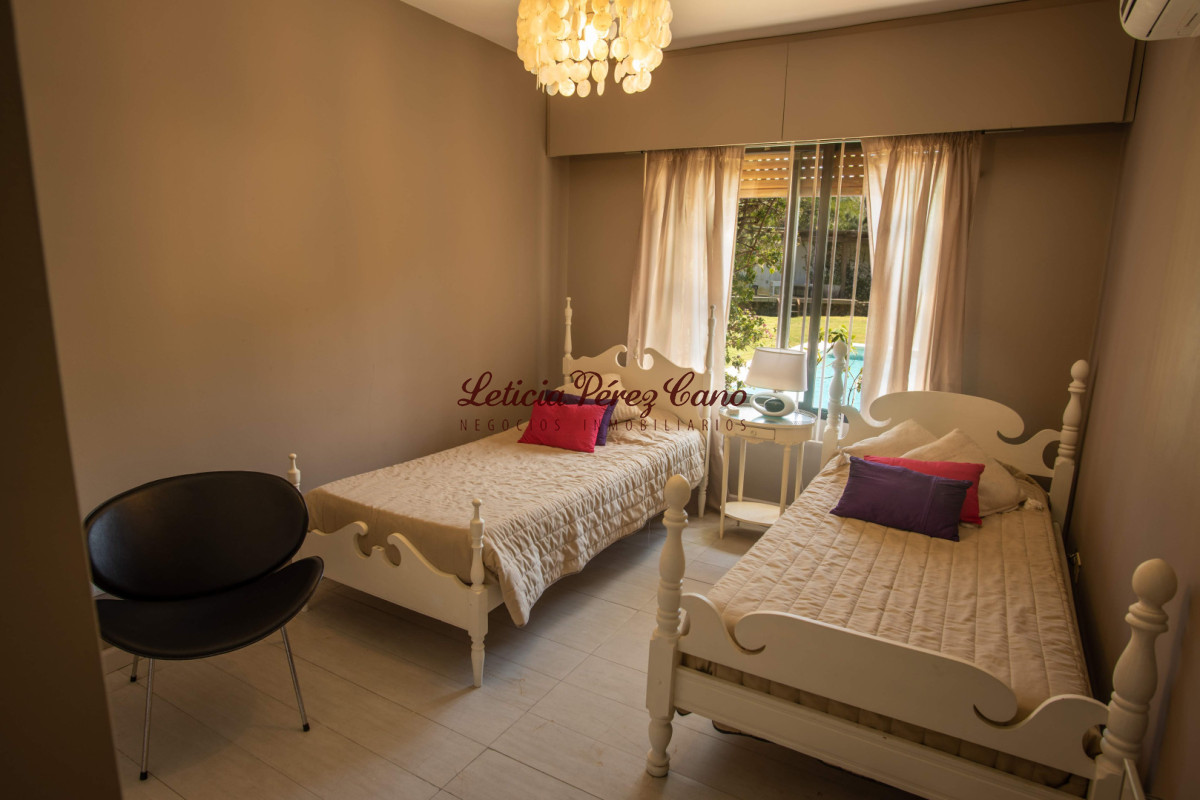 Amplio living comedor con estufa a leña, cocina con desayunador, 4 dormitorios, 3 baños (2 en suite), toilette, comodas terrazas, parrillero techado, piscina, cochera.