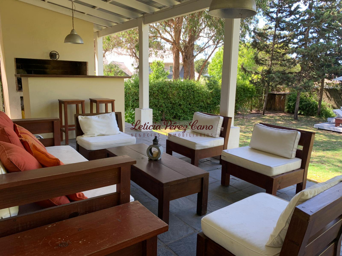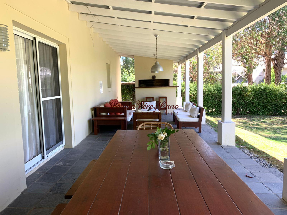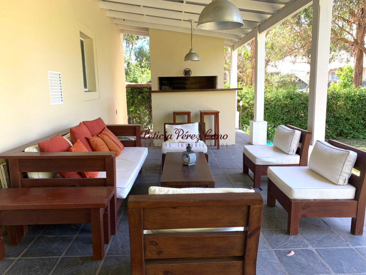 Amplia galeria con parrillero integrada a el jardín con piscina.