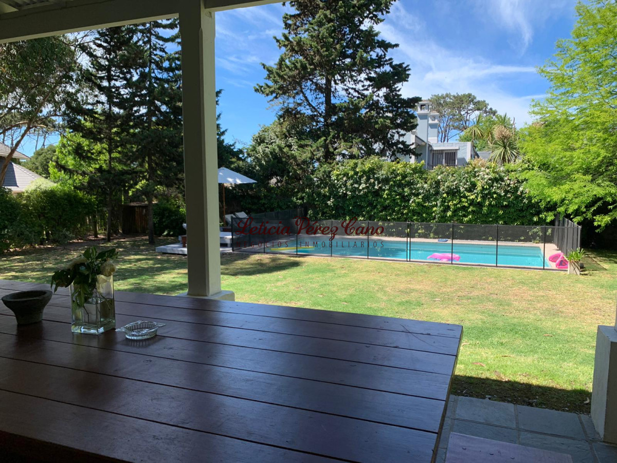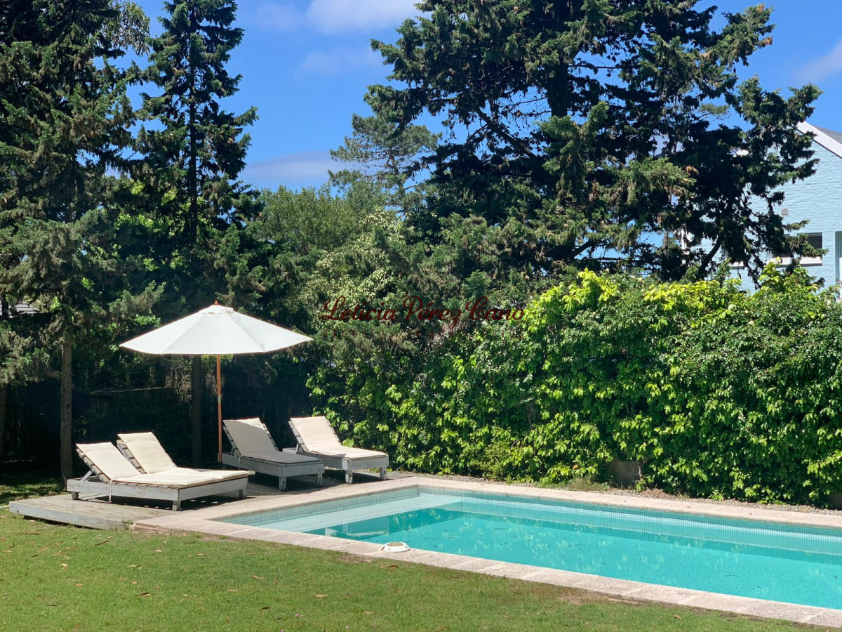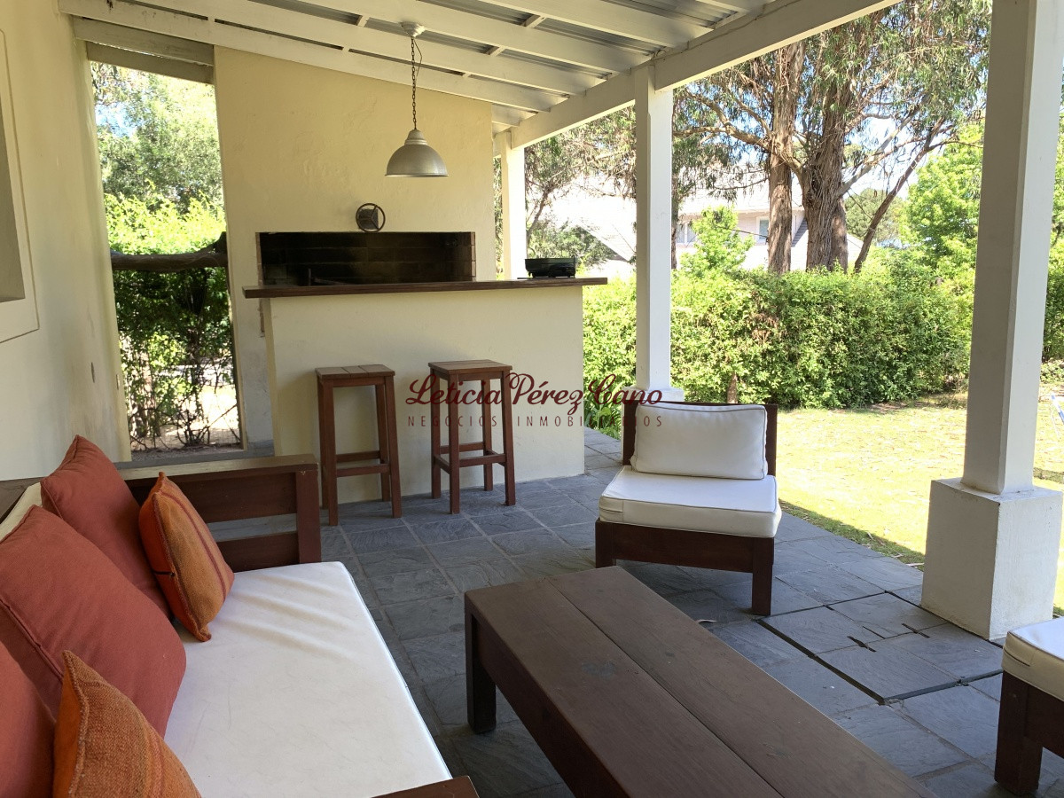 Amplia galeria con parrillero integrada a el jardín con piscina.