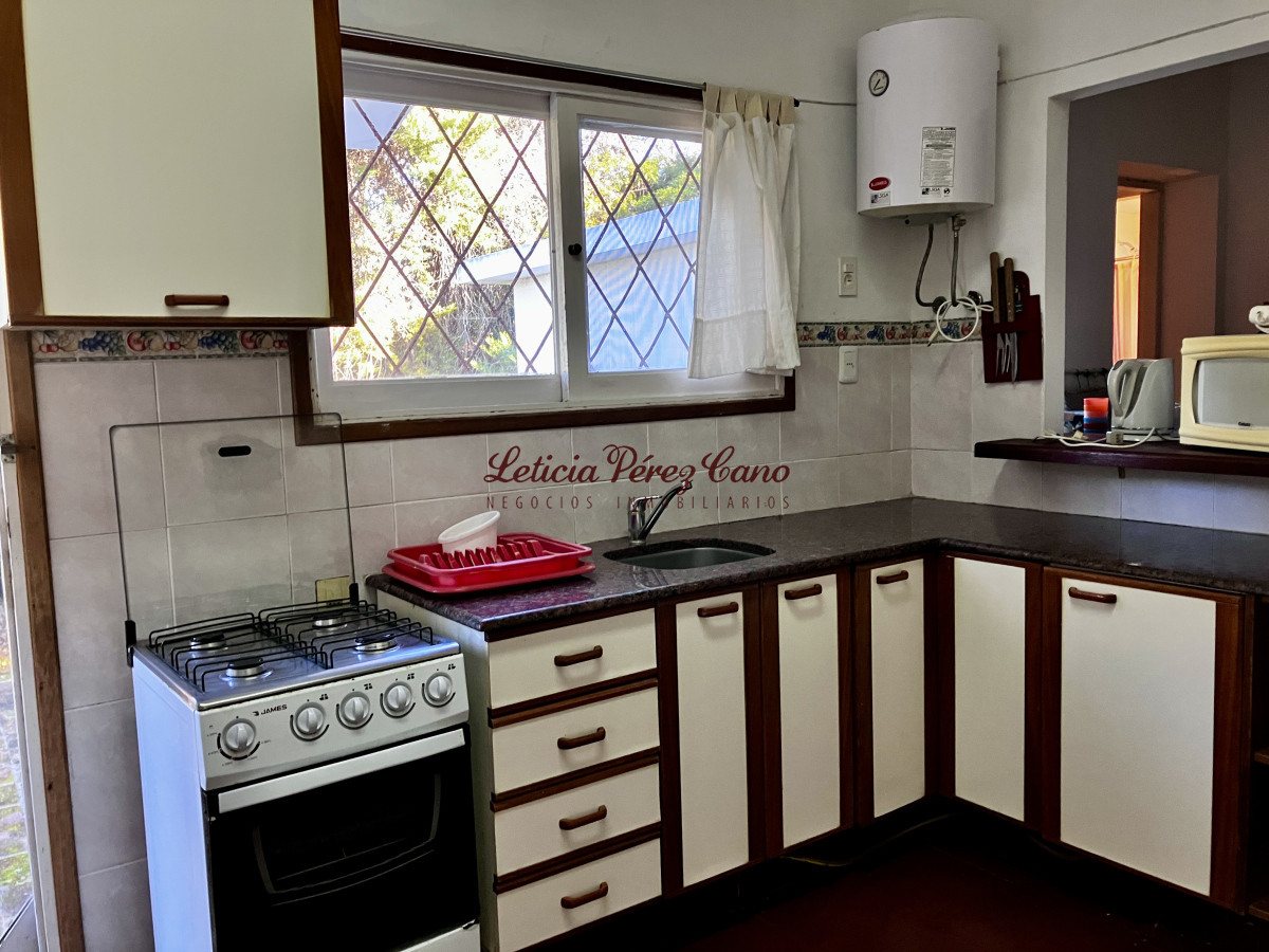 Living comedor con estufa a leña, cocina definida, 3 dormitorios, 2 baños (1 en suite), parrillero, estacionamiento