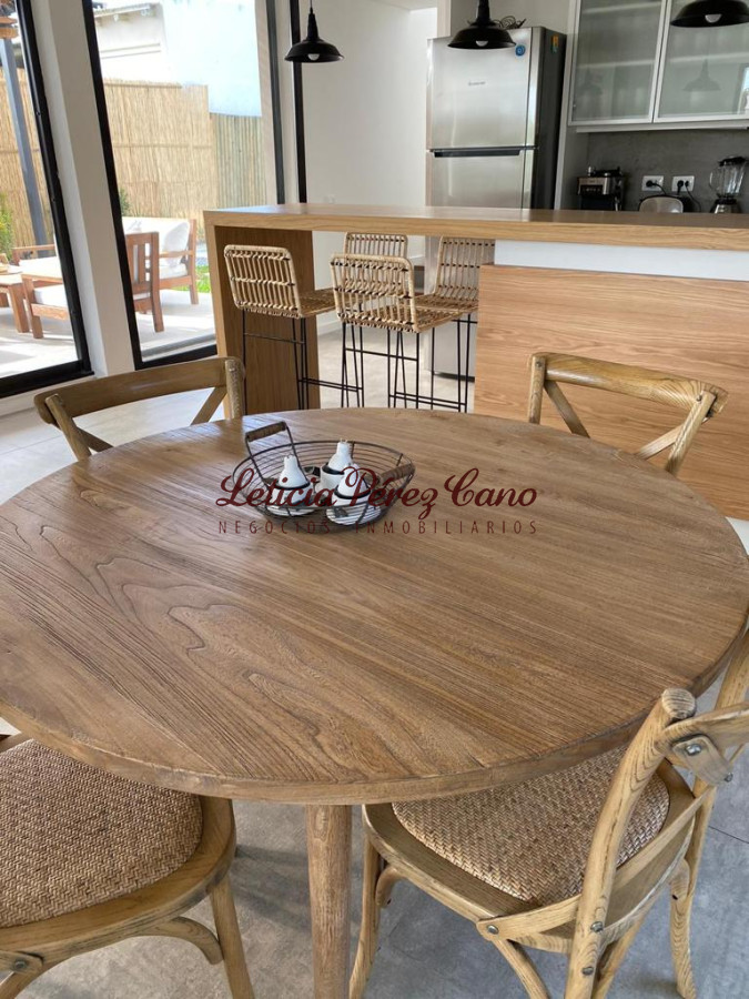 Living comedor con estufa a leña, cocina semi integrada , 4 dormitorios, 3 baños (1 en suite), lavadero, parrillero techado, piscina climatizada