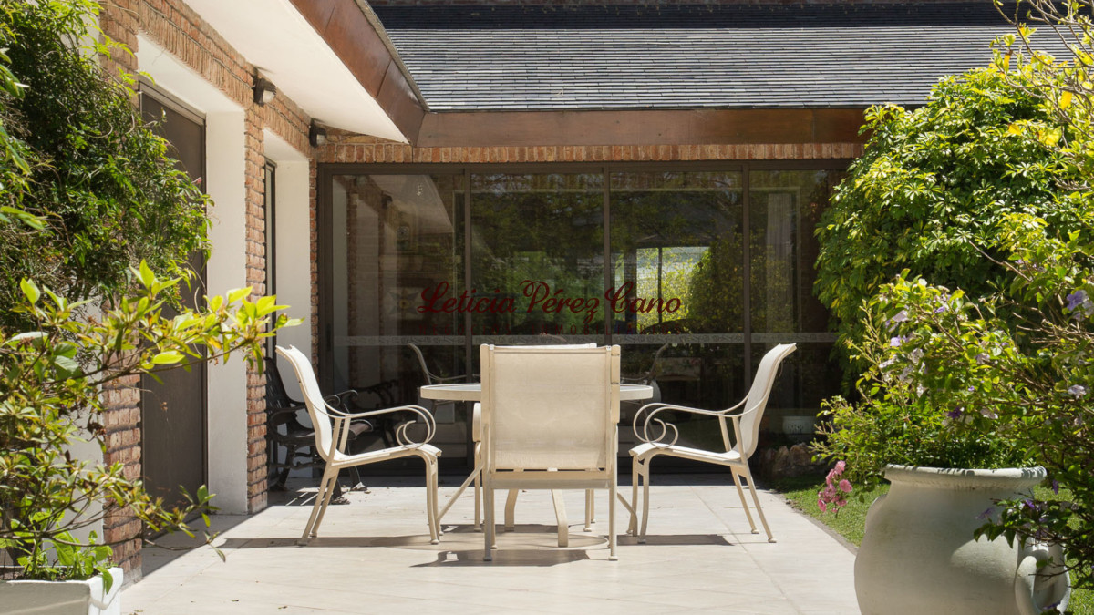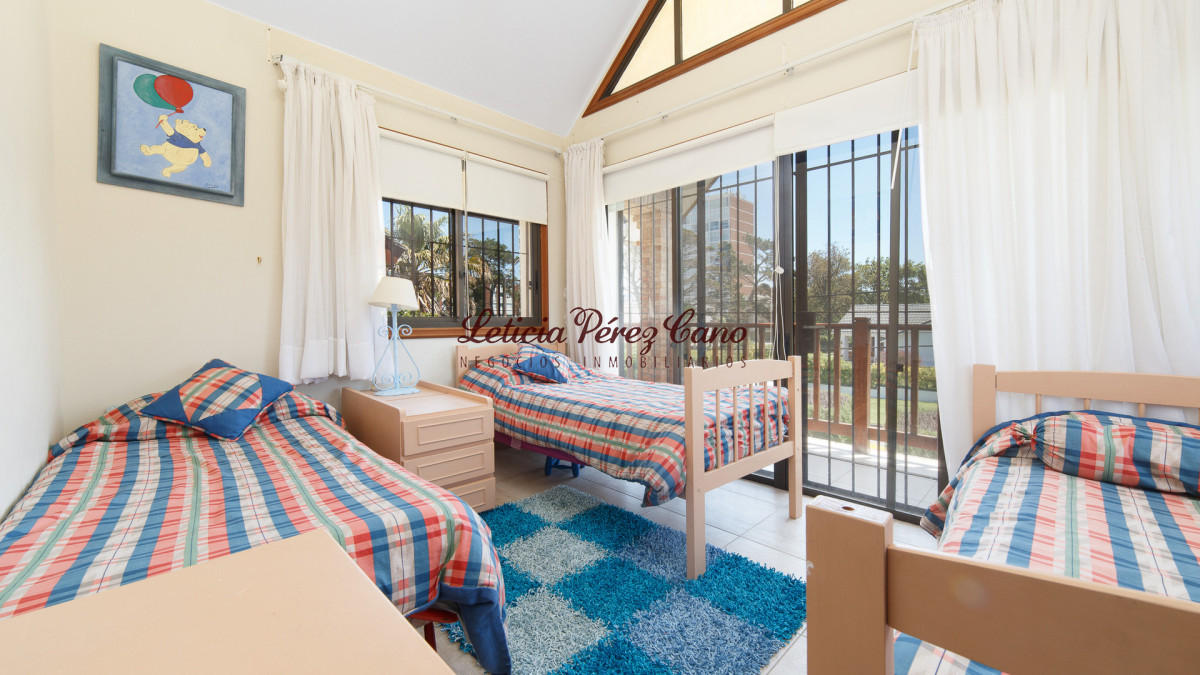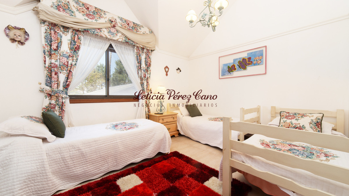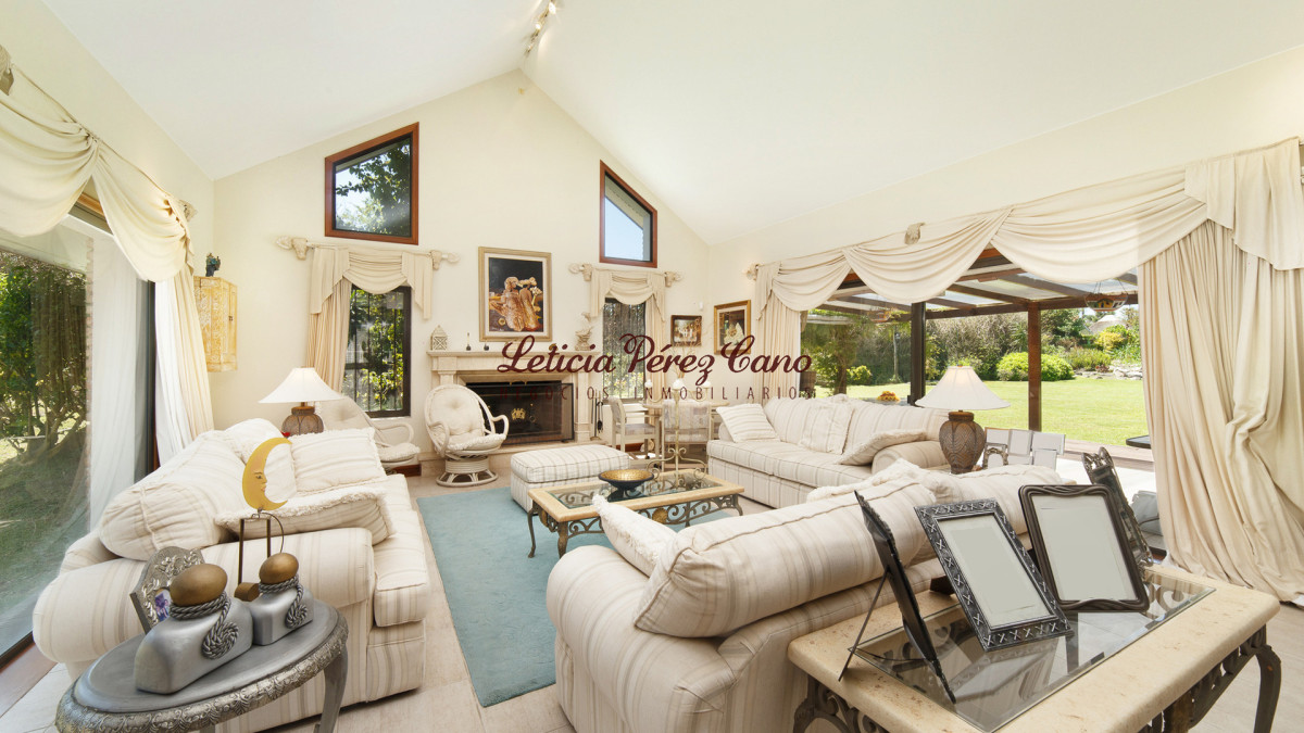 Amplio living con hogar, estar con TV, comedor, cocina con comedor diario, 7 dormitorios, 6 baños (5 en suite), dependencia de servicio con baño (con dos camas), toilette, barbacoa cerrada, galería con vista al jardín, play room, sauna, piscina interior climatizada. Garaje cerrado para 2 autos con acceso interno a la casa
