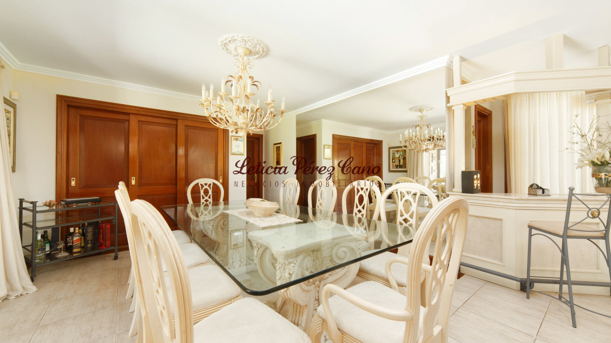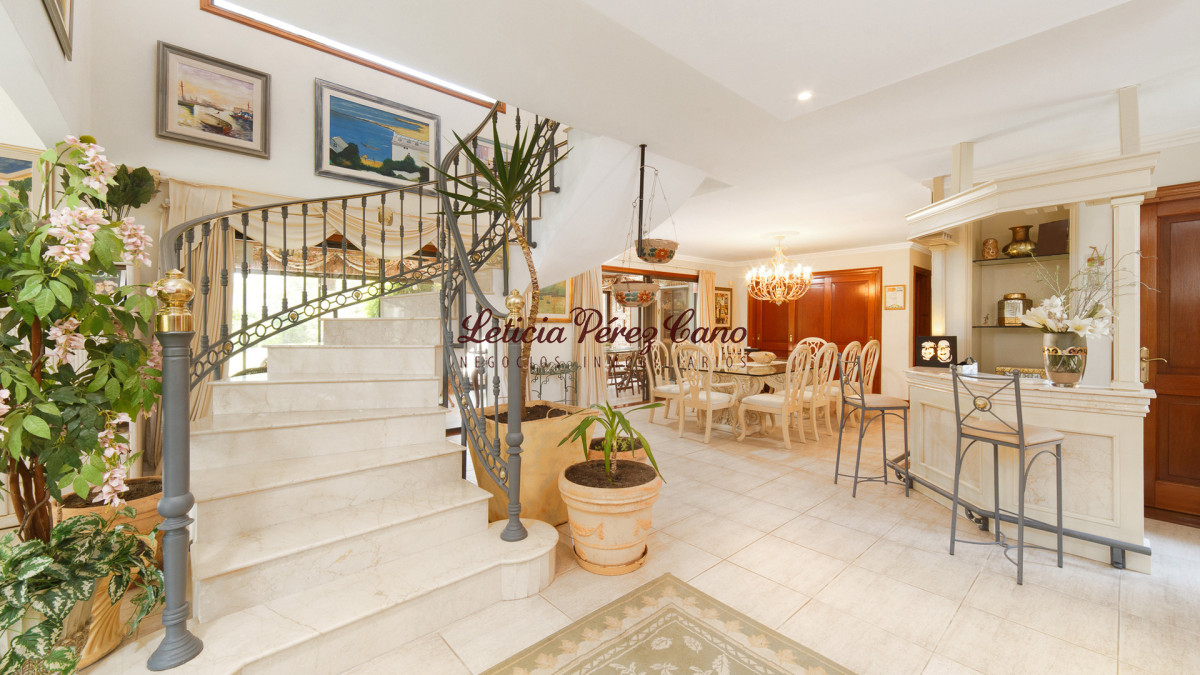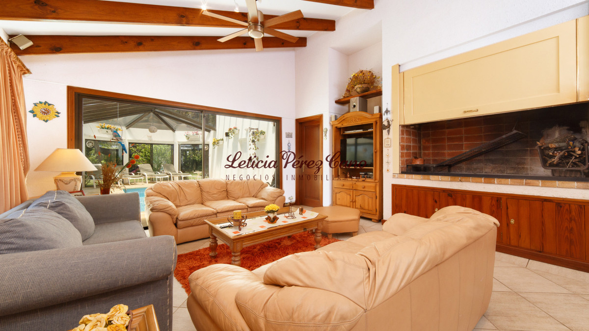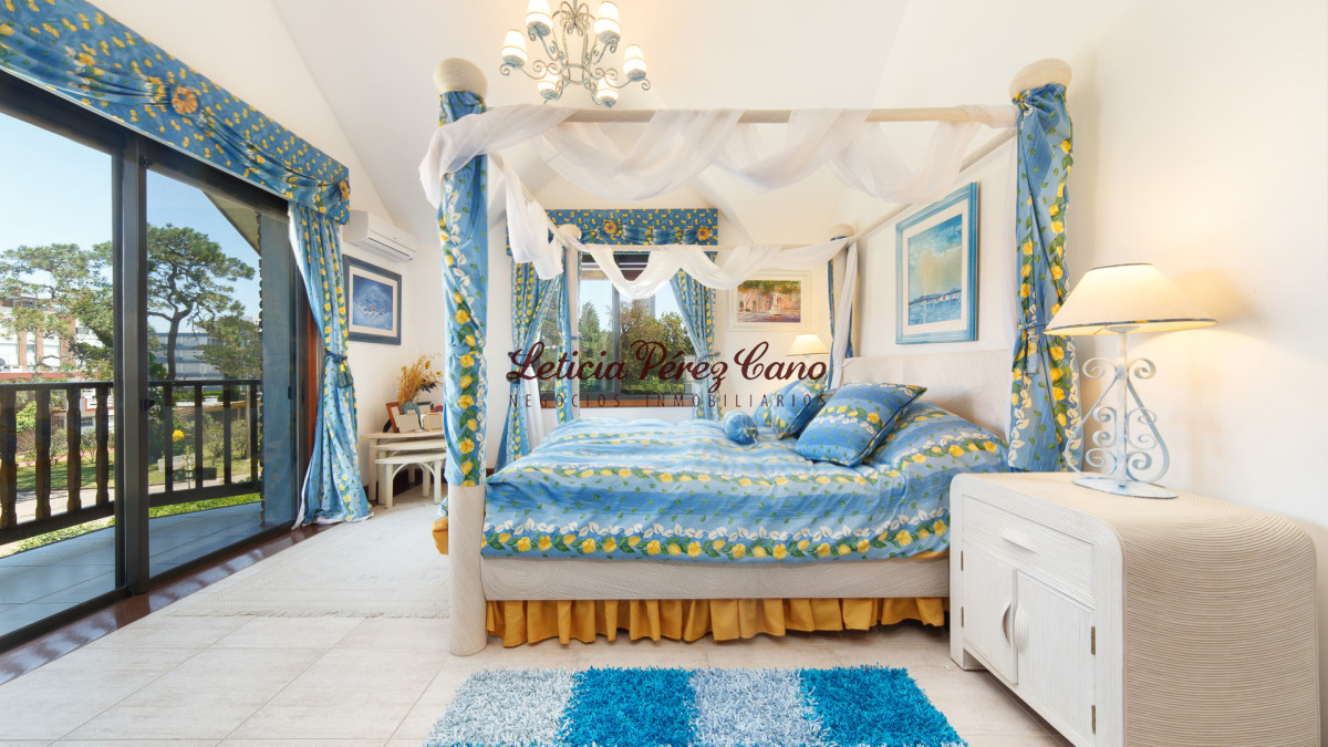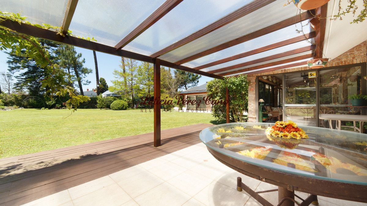 Amplio living con hogar, estar con TV, comedor, cocina con comedor diario, 7 dormitorios, 6 baños (5 en suite), dependencia de servicio con baño (con dos camas), toilette, barbacoa cerrada, galería con vista al jardín, play room, sauna, piscina interior climatizada. Garaje cerrado para 2 autos con acceso interno a la casa