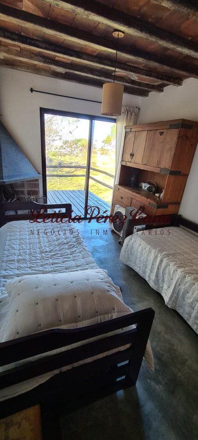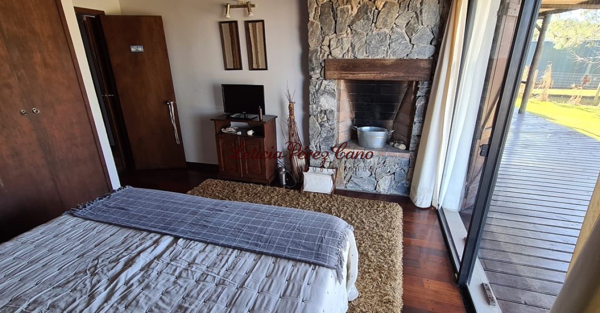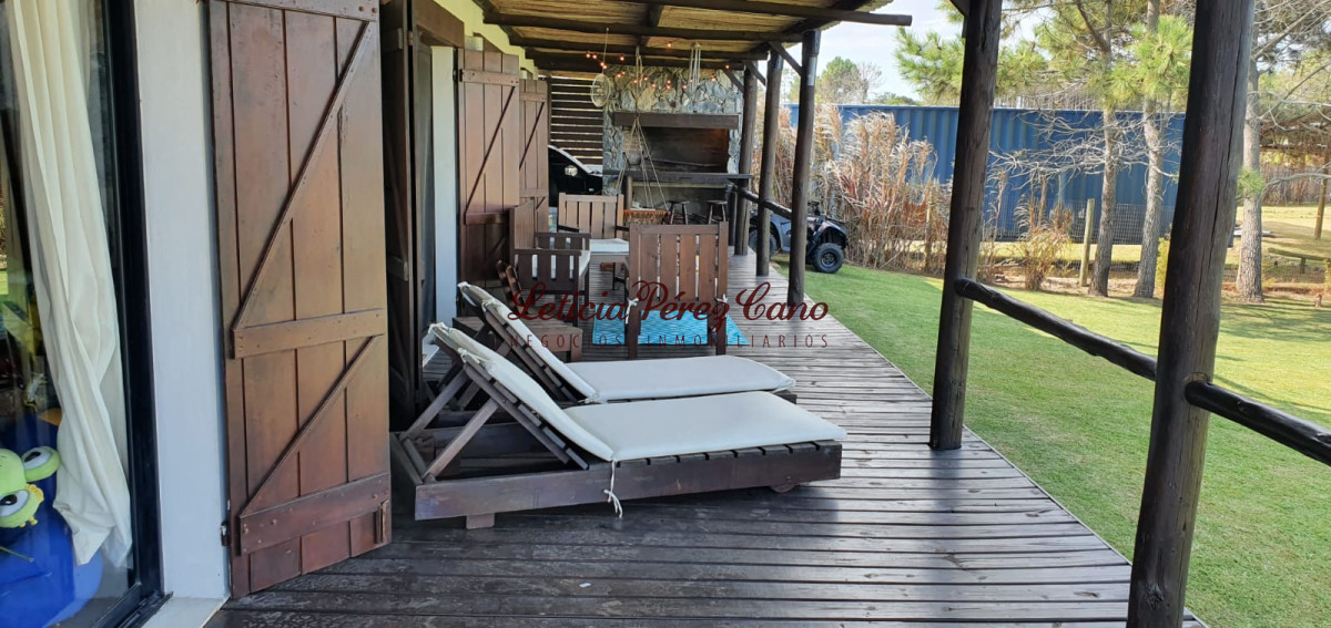 Living comedor con estufa a leña , cocina integrada, 4 dormitorios, 4 baños ( en suite), toilette, dependencia deservicio con baño, parrillero, piscina, estacionamiento, cochera techada, jardin cercado