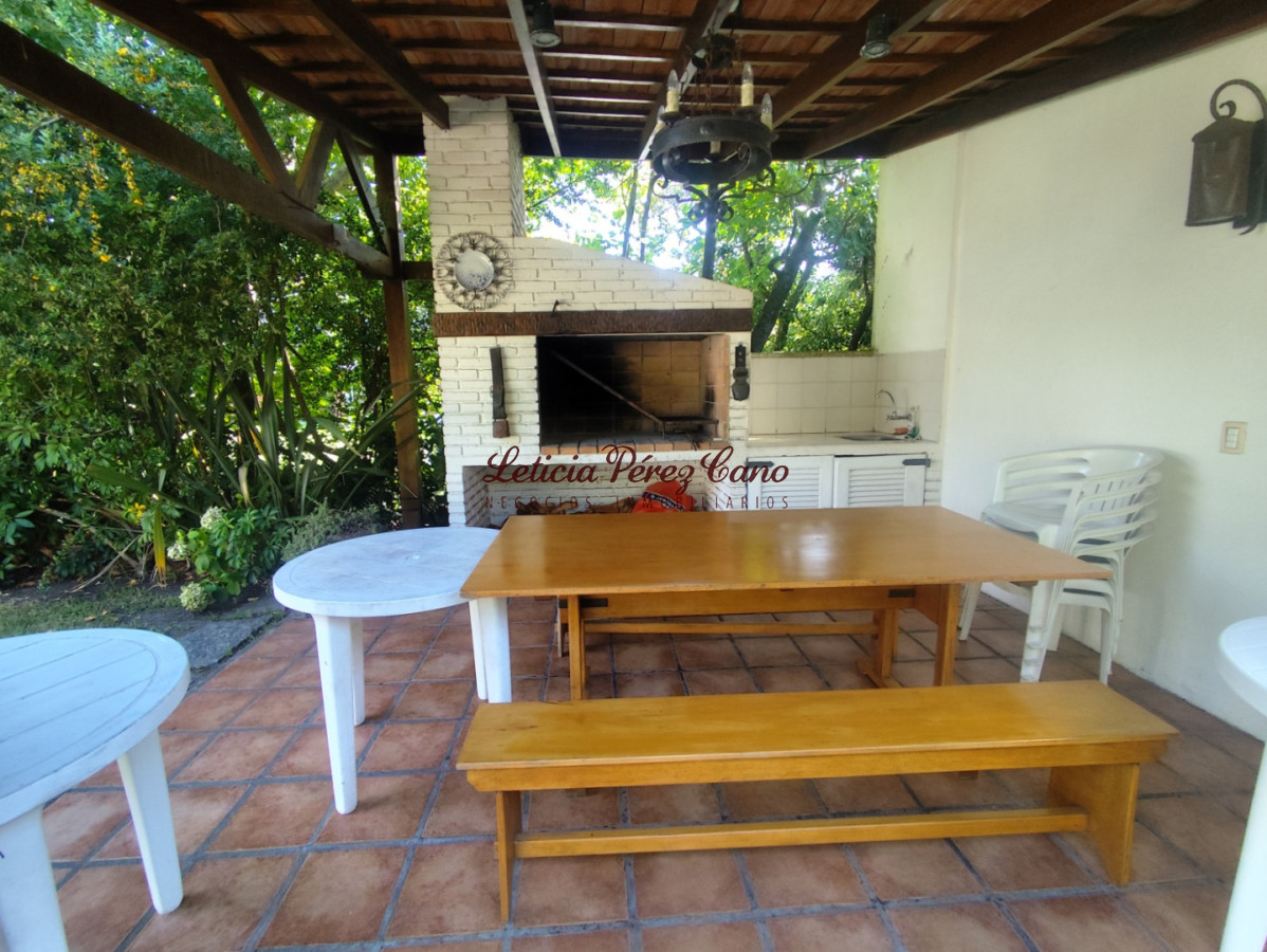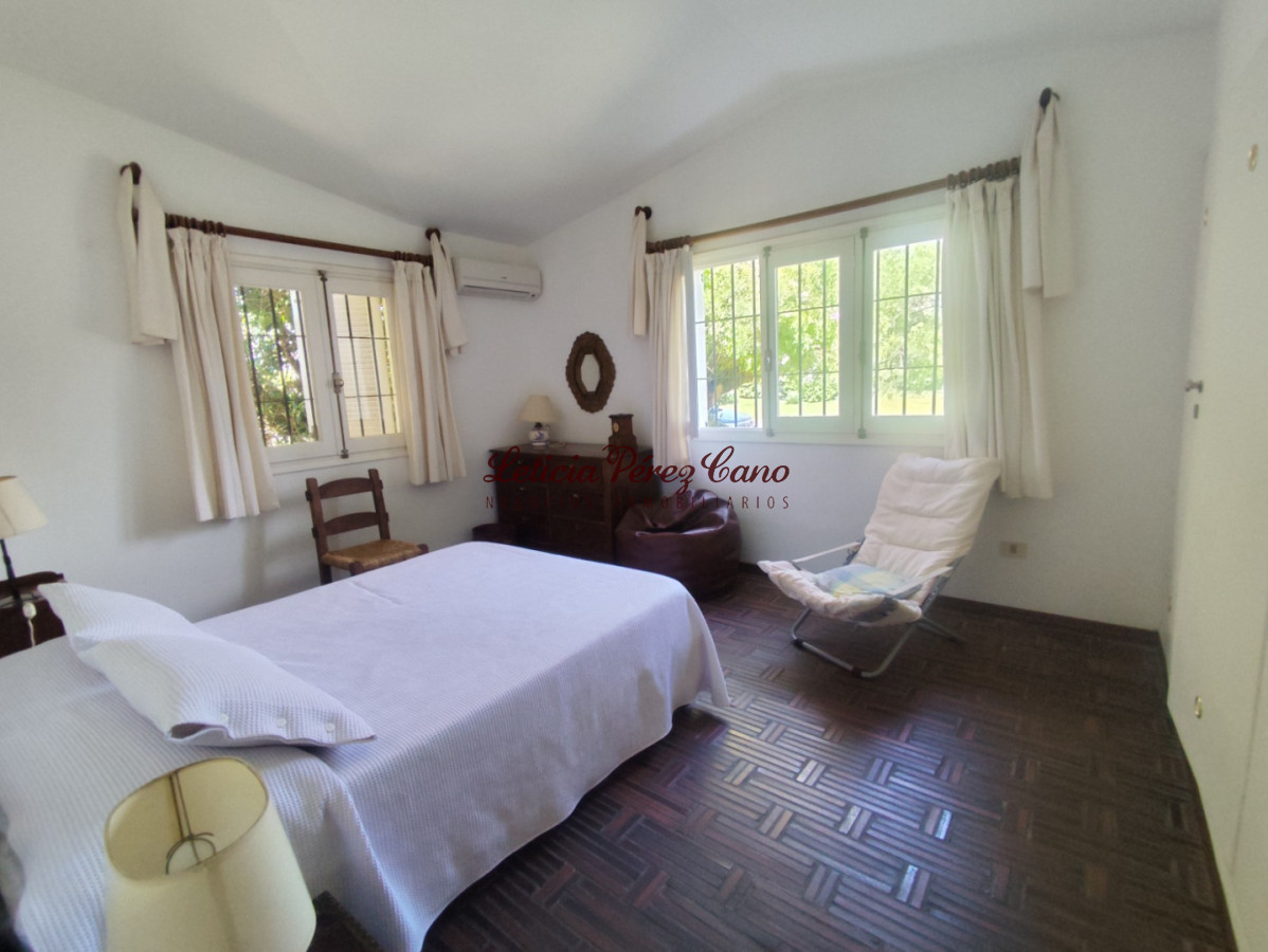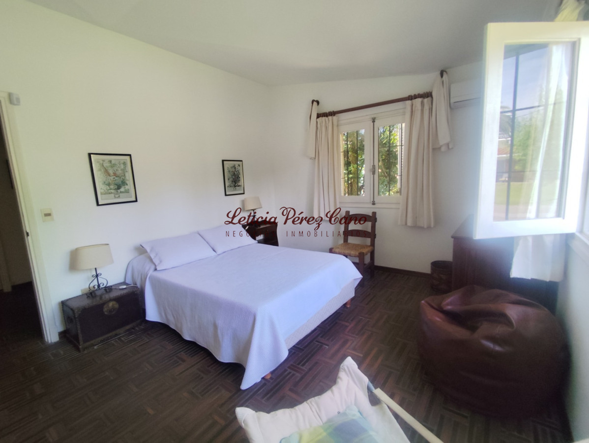 Living comedor con estufa a leños y grandes ventanales, cocina con desayunador con salida al exterior, 2 dormitorios con salida al parque con placares doble altura con mucha capacidad de guardado, 2 baños (1 en suite) , dependencia de servicio independiente con baño completo o apartamento de huéspedes de la misma calidad que el interior, parque, cerrado, parrillero techado, aire acondicionado en todos los ambientes, postigos, rejas, alarma.