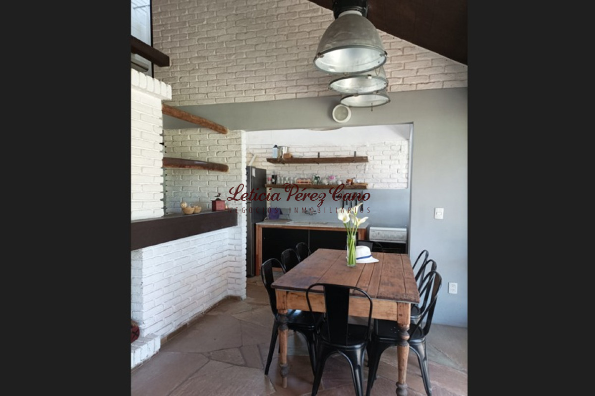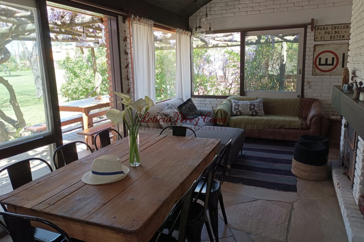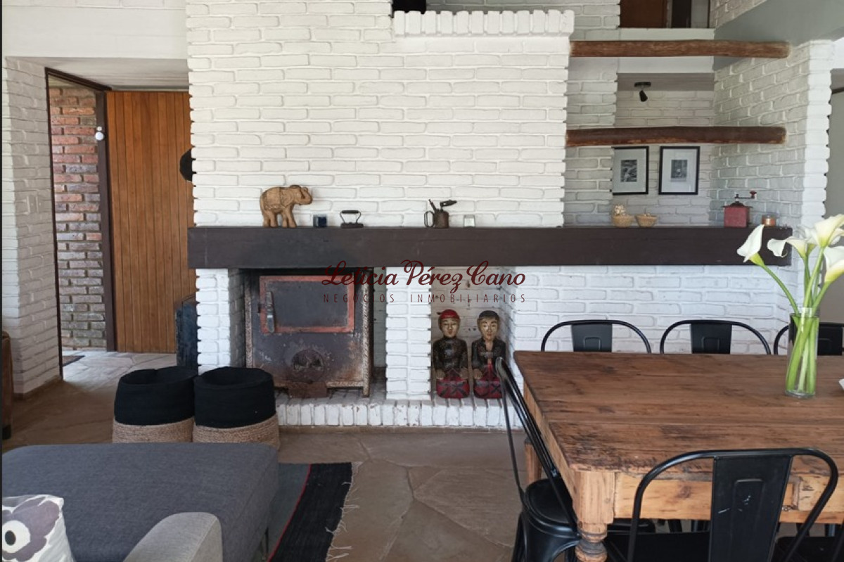 Living comedor con estufa a leña, cocina, 4 dormitorios, 2 baños, parrillero